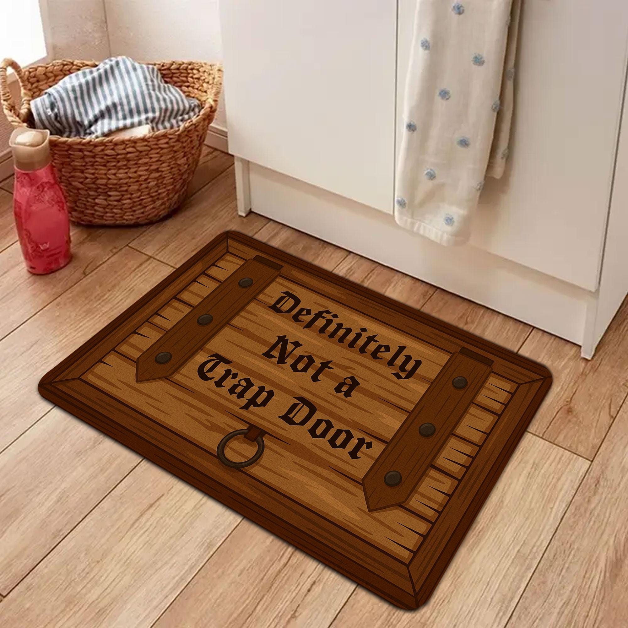 Funny 'Definitely Not a Trap Door' Doormat - Gamer Welcome Mat