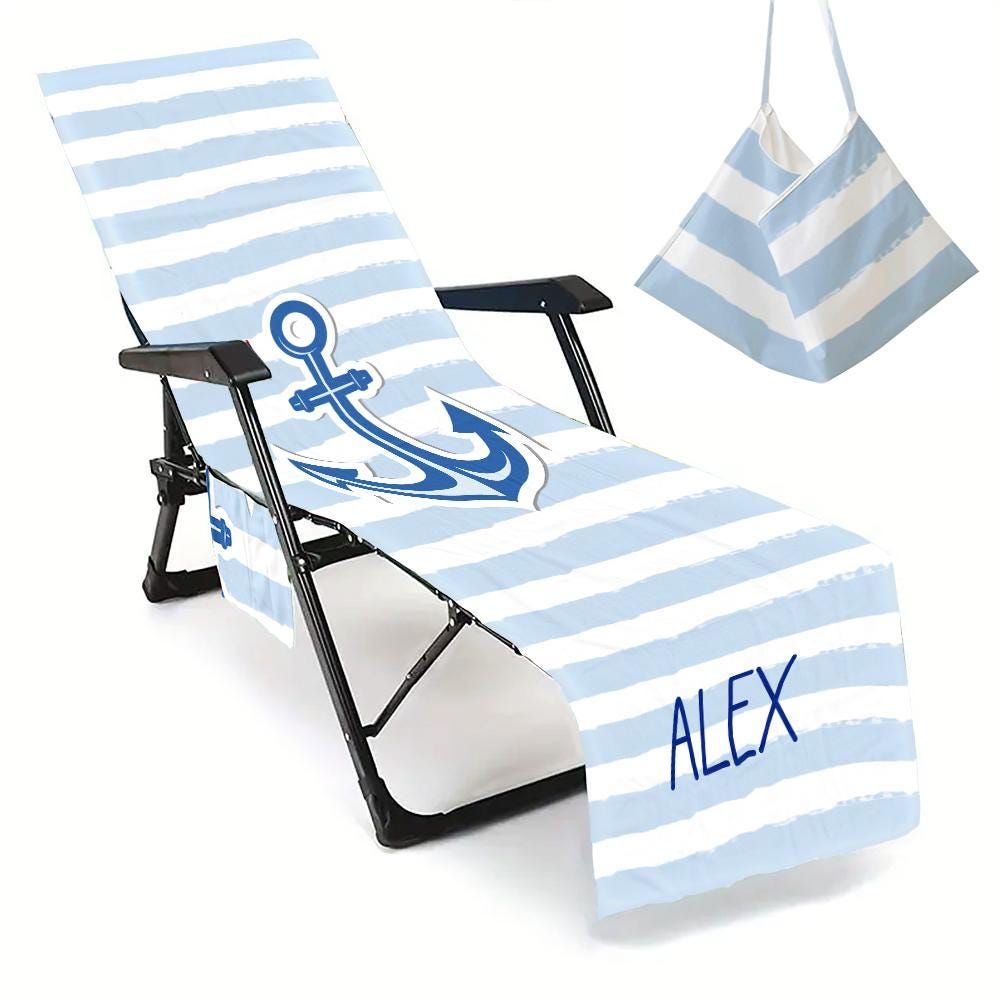 Personalized Anchor Beach Chair Cover: Quick Dry Microfiber Lounge Towel