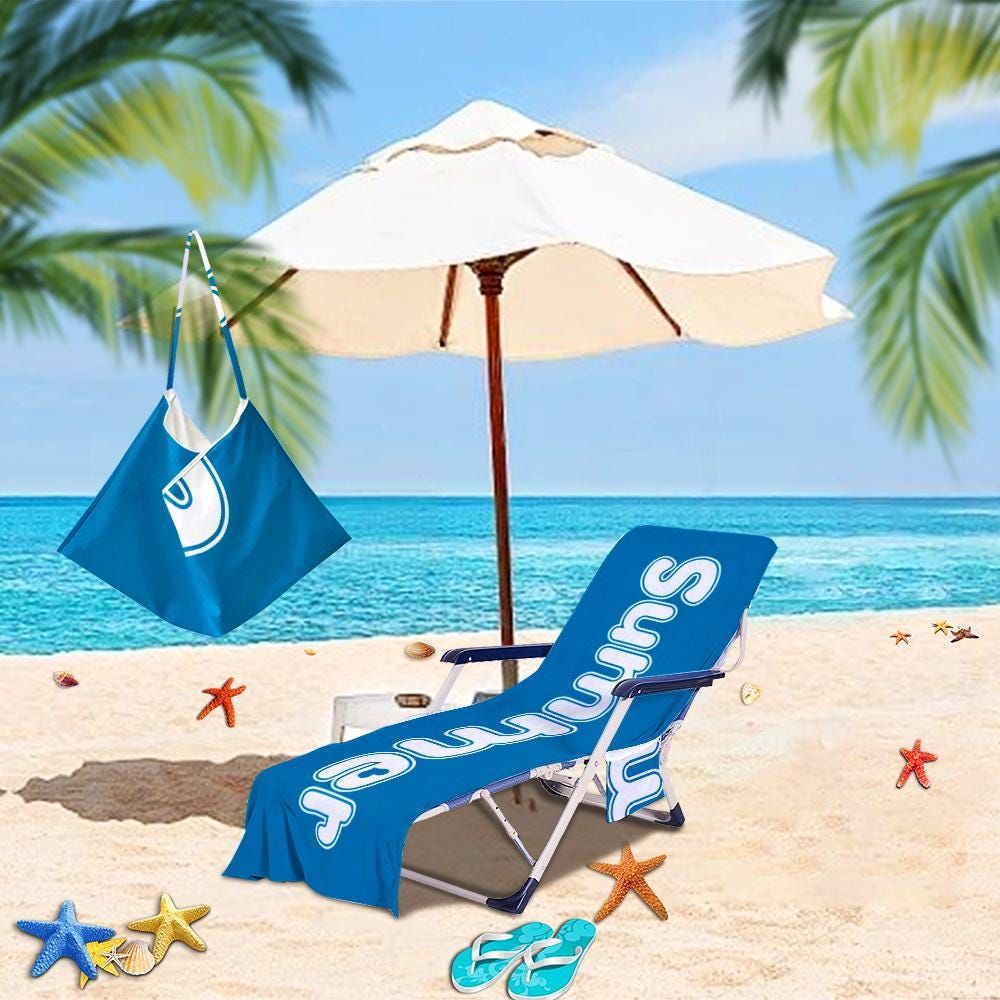 Personalized Beach Chair Cover: Custom Name Microfiber Towel with Pockets