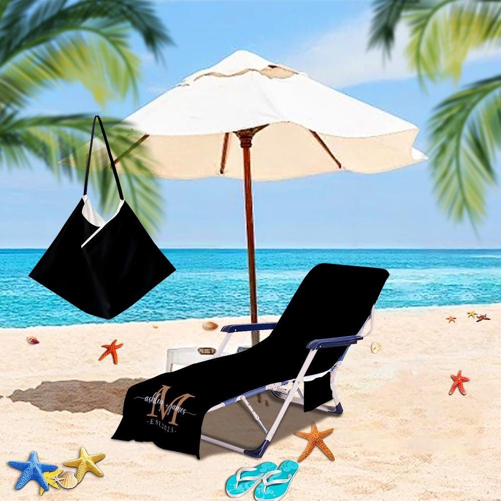 Personalized Beach Chair Cover Towel: Microfiber Chaise Lounge with Pockets