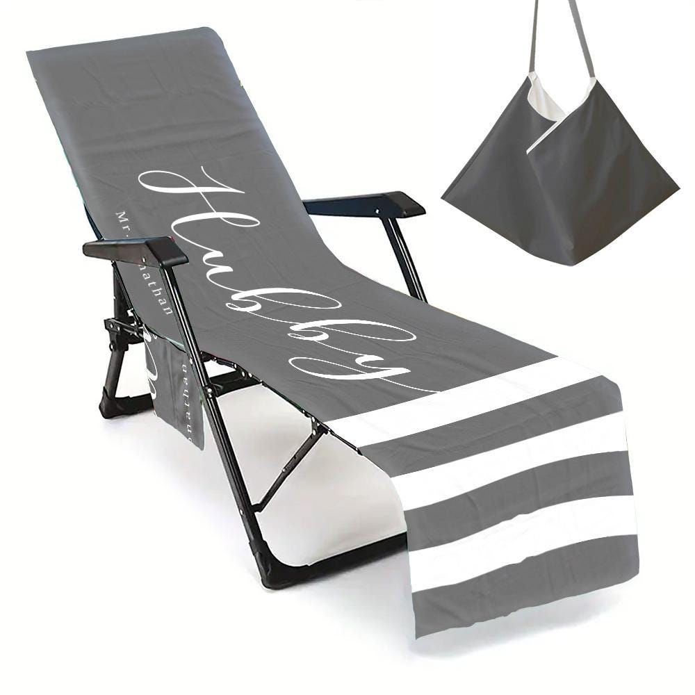 Personalized Beach Chair Cover: Wifey & Hubby Custom Microfiber Towel