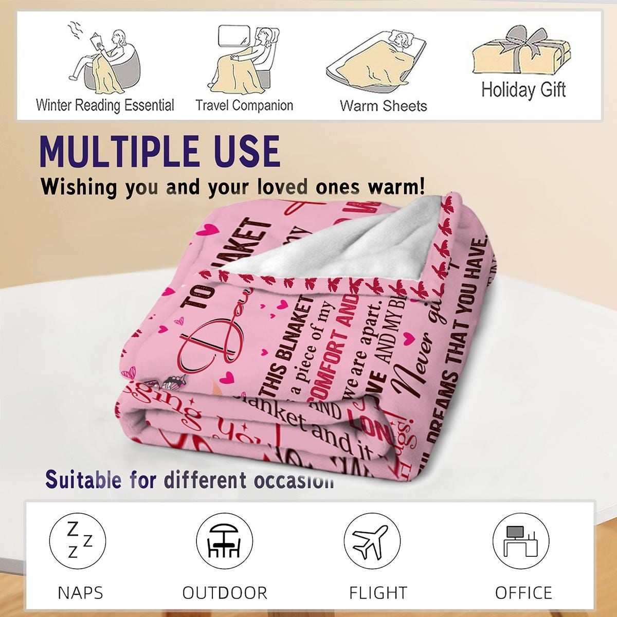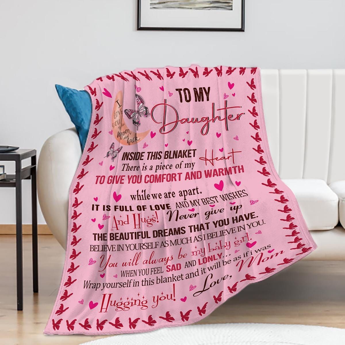 Personalized Daughter Blanket, Custom Name Gift Valentine's Day Gifts for Daughter Pink Butterfly Blanket for Daughter Mom to Daughter Gift