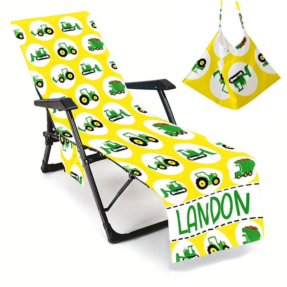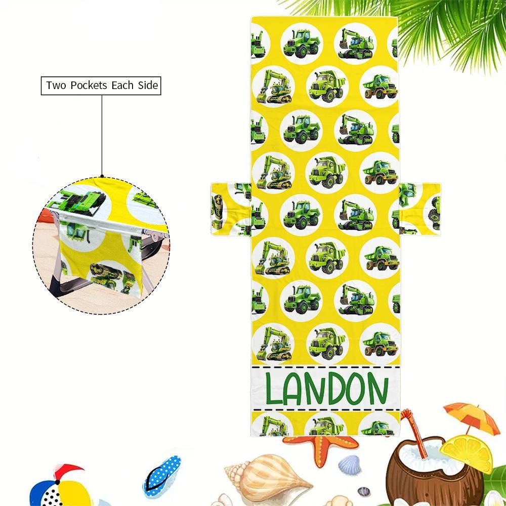 Personalized Engineering Vehicles Beach Chair Cover: Custom Name Microfiber Towel