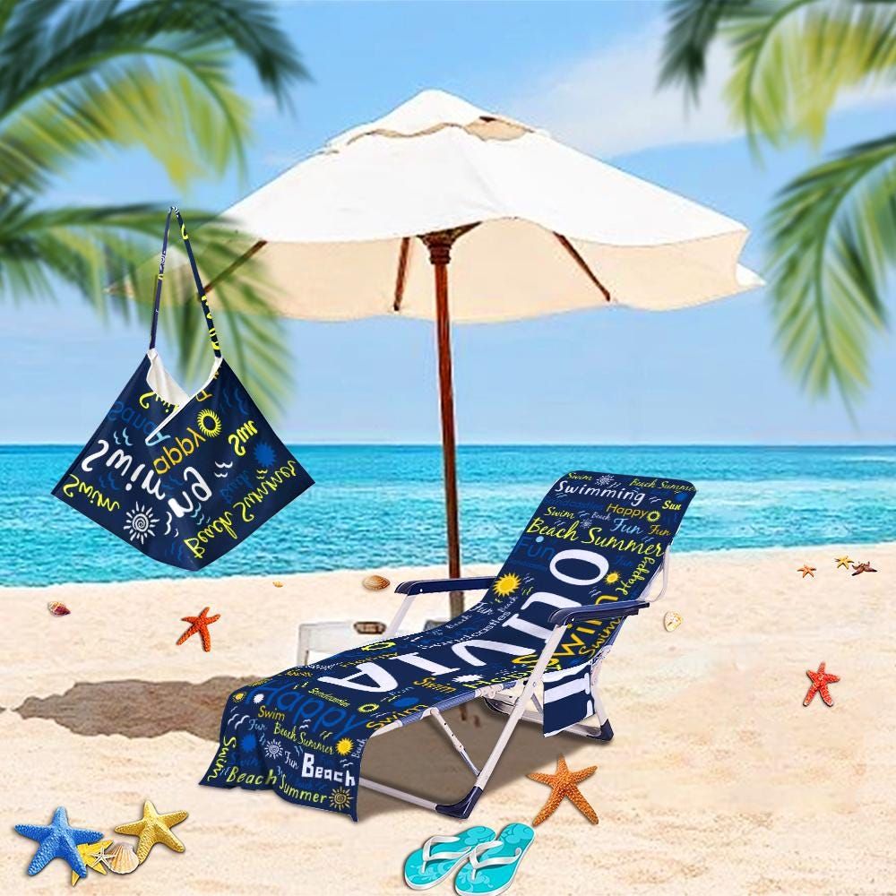 Personalized Microfiber Beach Chair Cover with Pockets: Quick Dry Lounge Towel