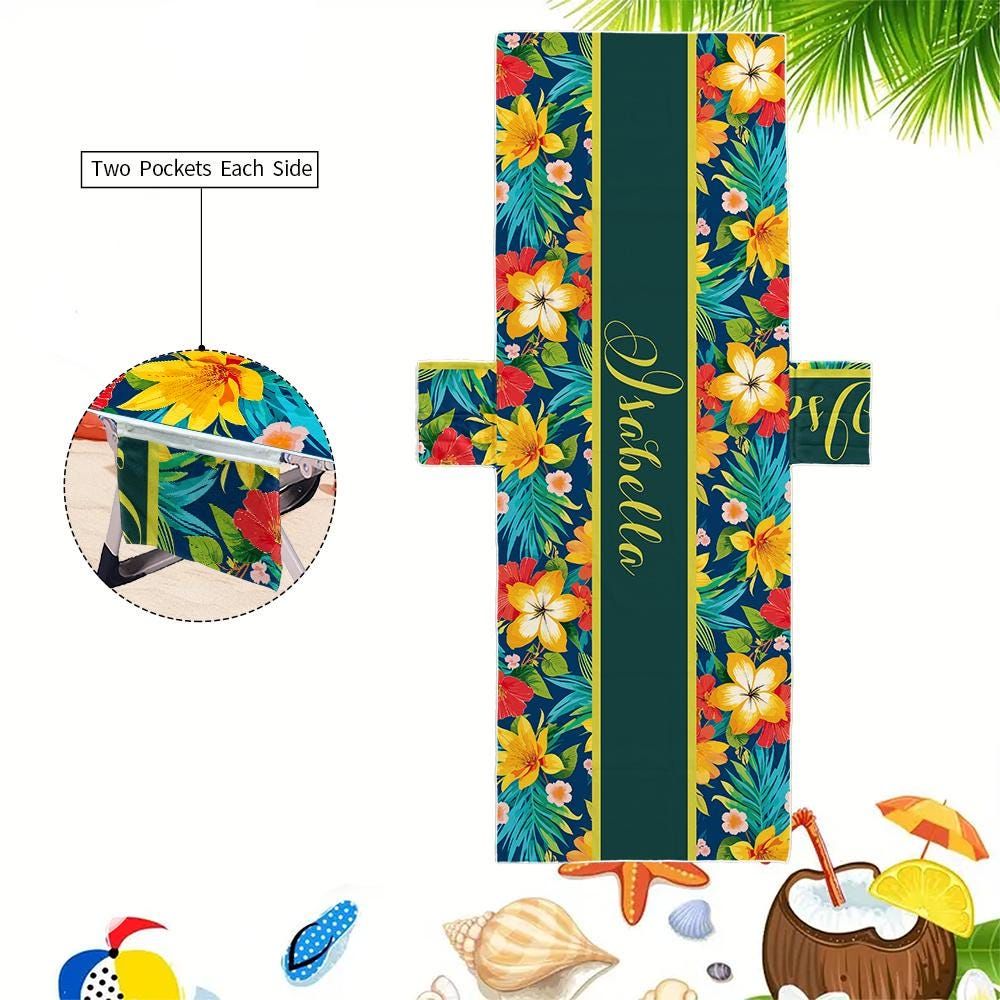 Personalized Pool Chair Cover: Microfiber Beach Towel with Pockets
