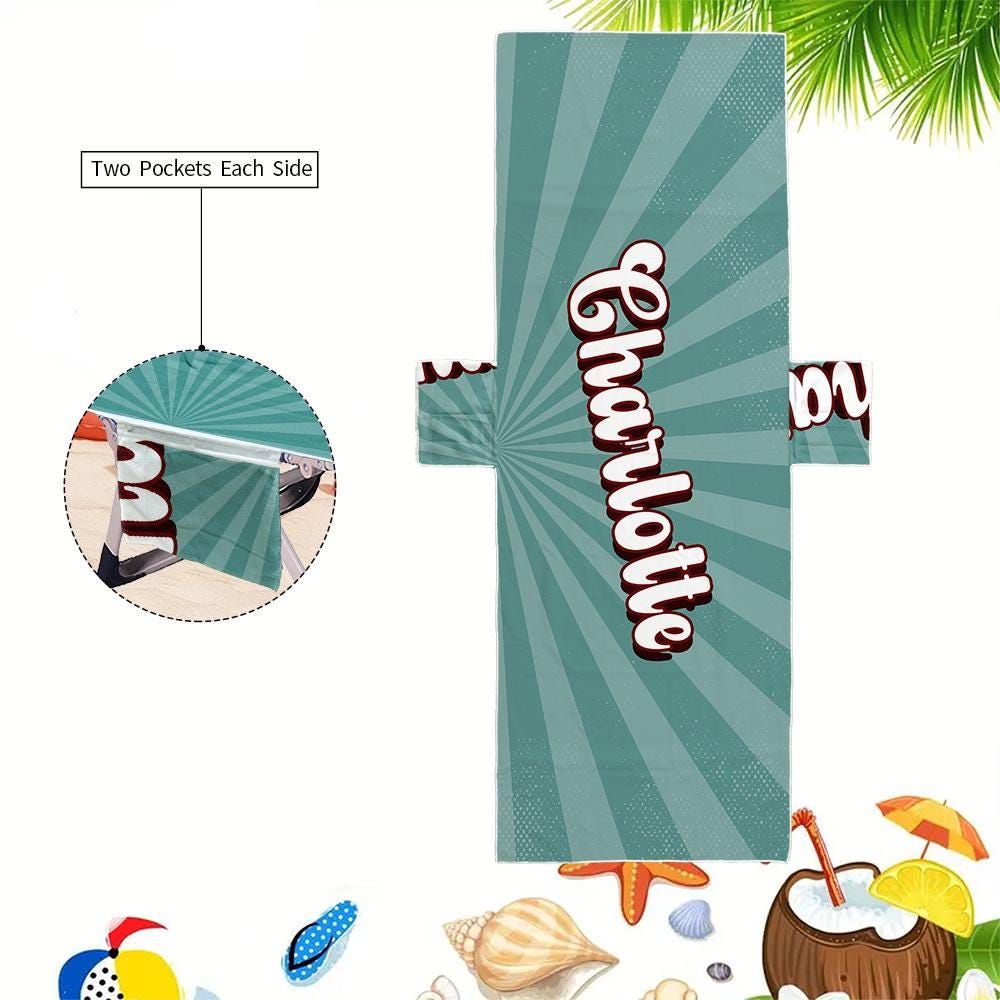 Personalized Pool Chair Cover with Pockets: Microfiber Beach Towel