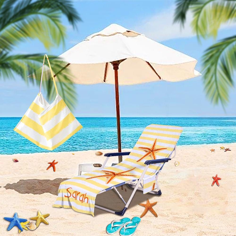 Personalized Starfish Beach Chair Cover: Quick Dry Microfiber Lounge Towel