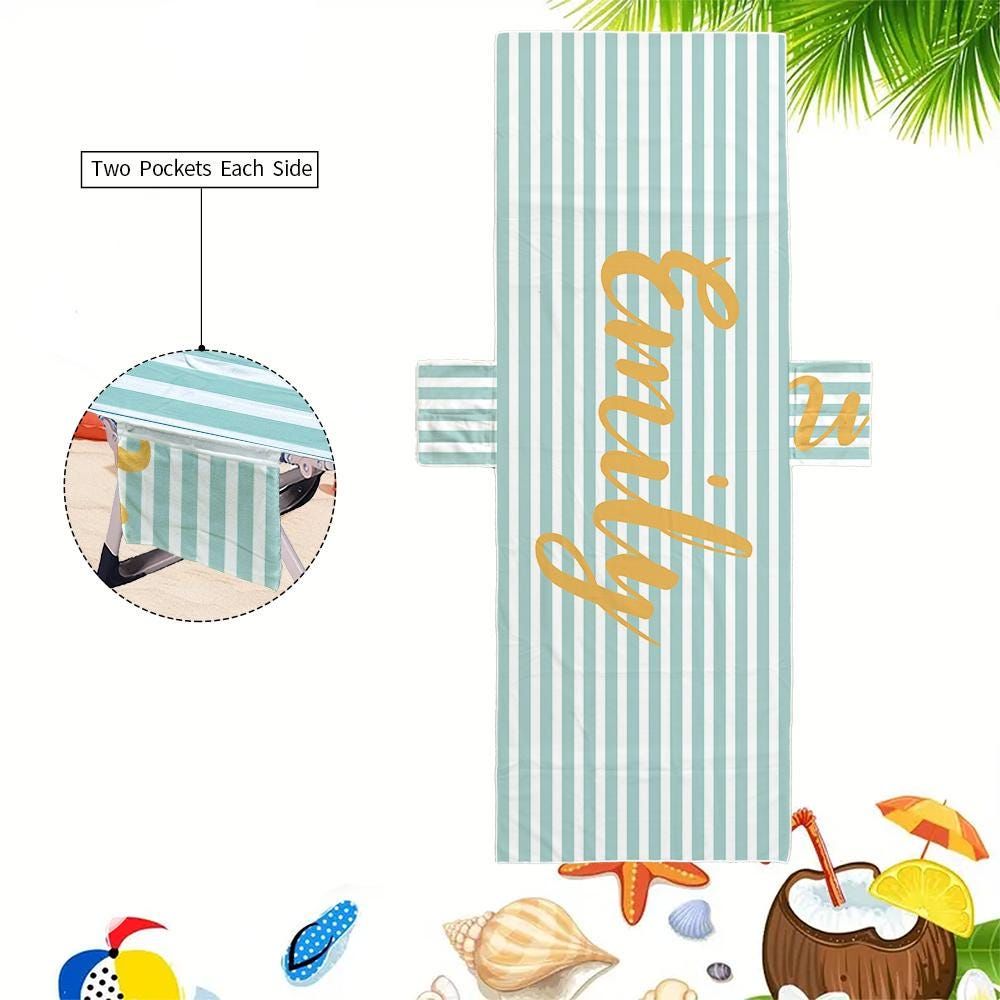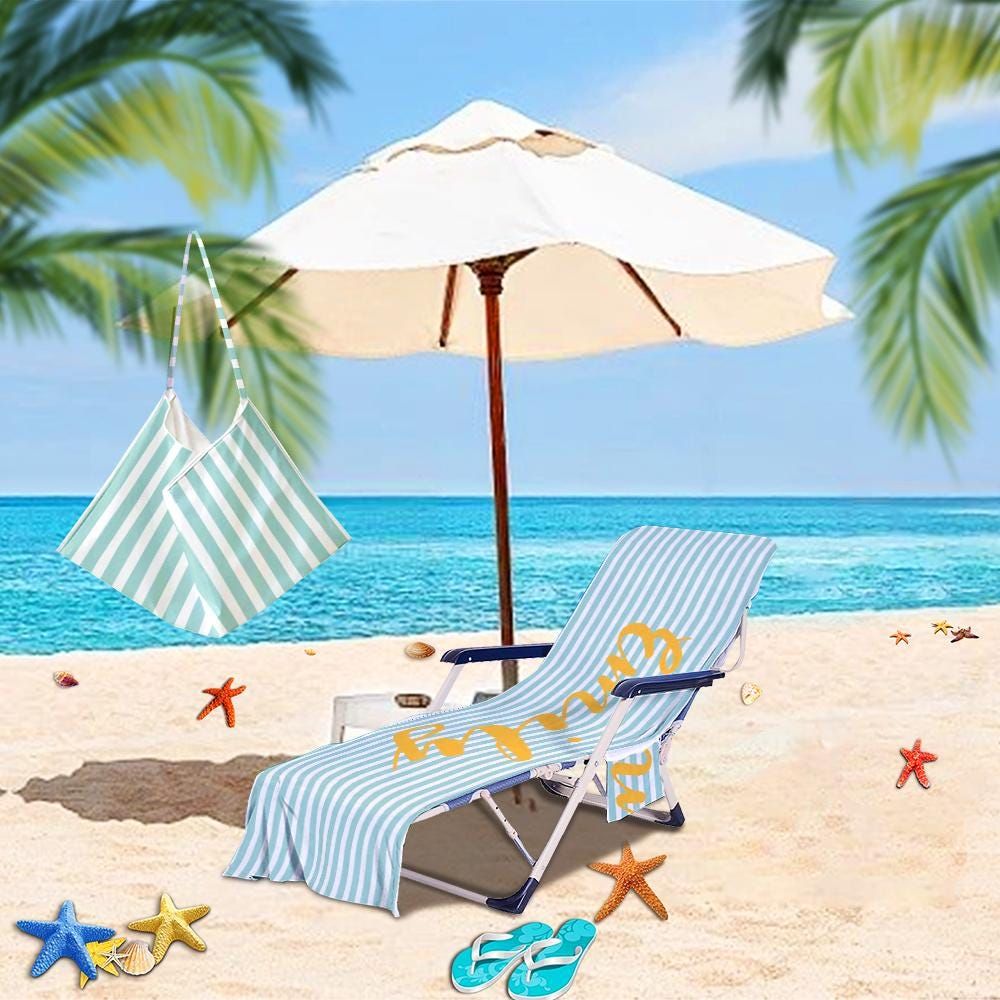 Personalized Stripe Beach Chair Cover: Microfiber Lounge Towel with Pockets