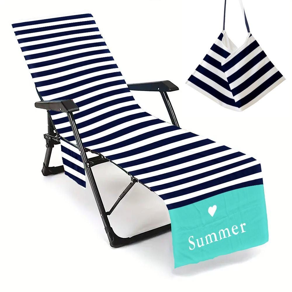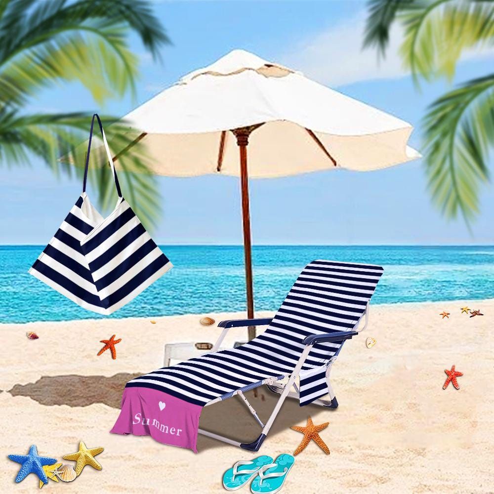 Personalized Stripe Beach Chair Cover with Pockets: Quick-Dry Microfiber