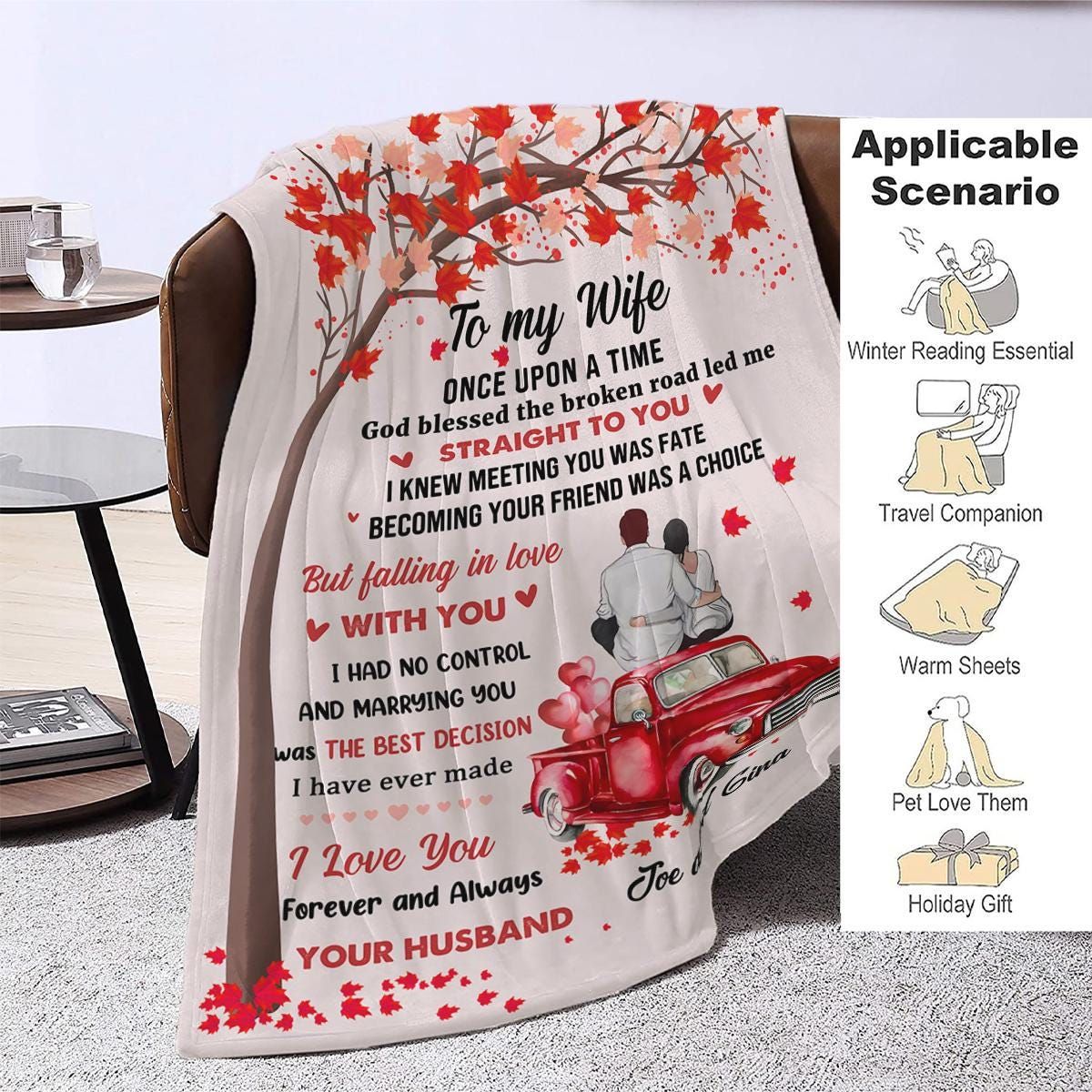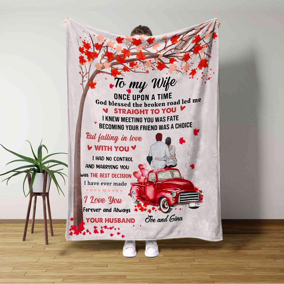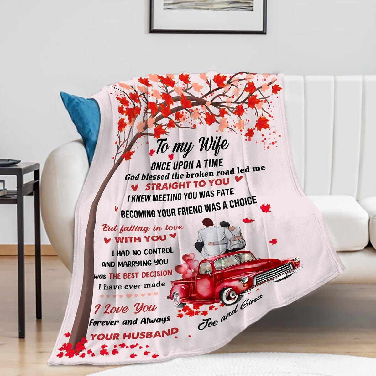 Personalized Wife Blanket Romantic Red Truck Custom Name Throw Anniversary Gift for Wife Valentine's Day Gifts for Wife Husband to Wife Gift